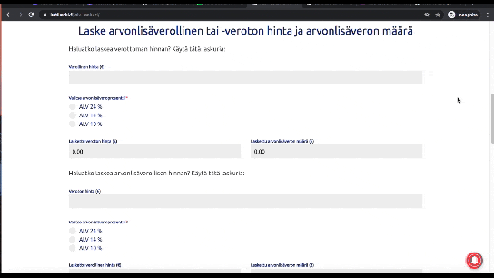 ALV-laskuri arvonlisäveron laskemiseen